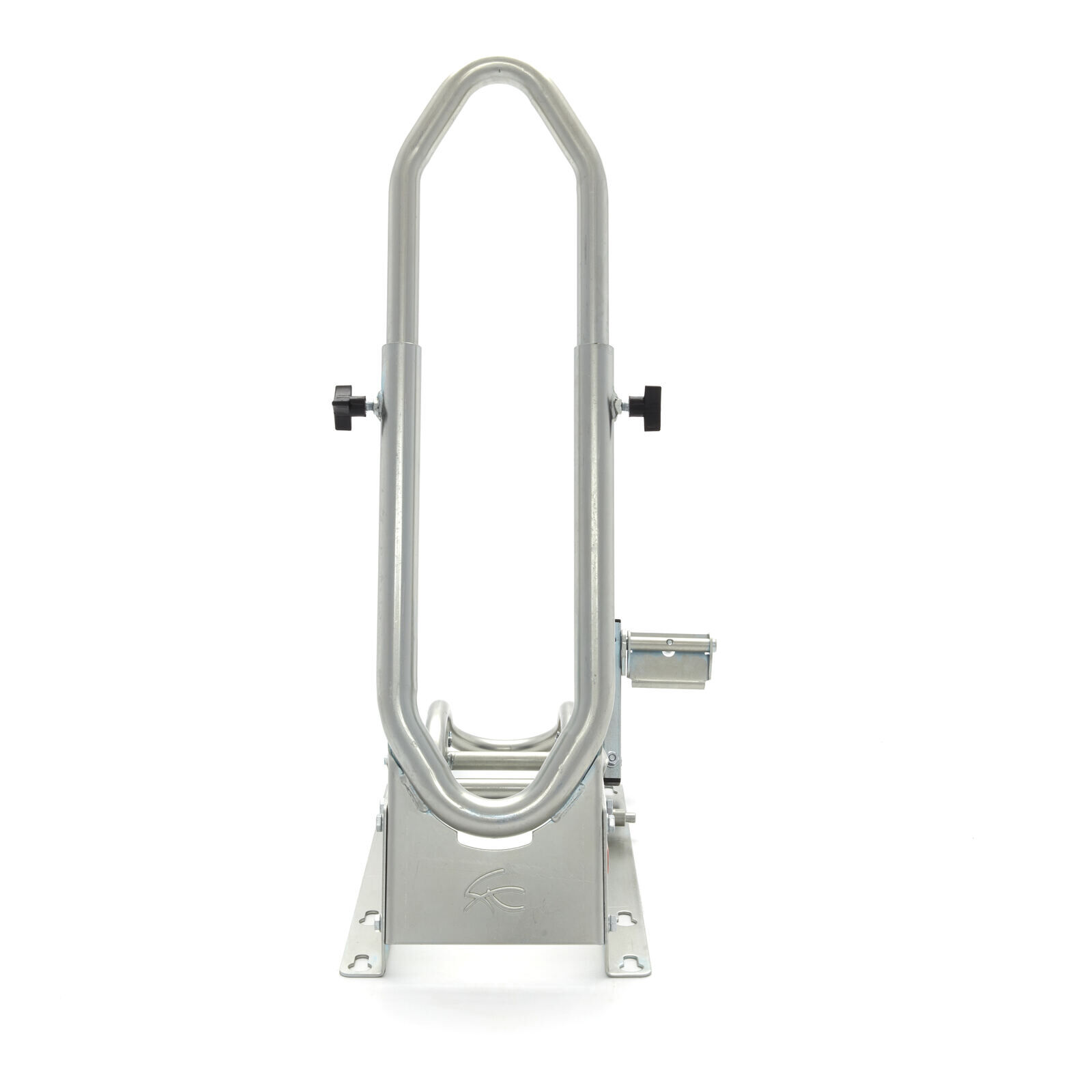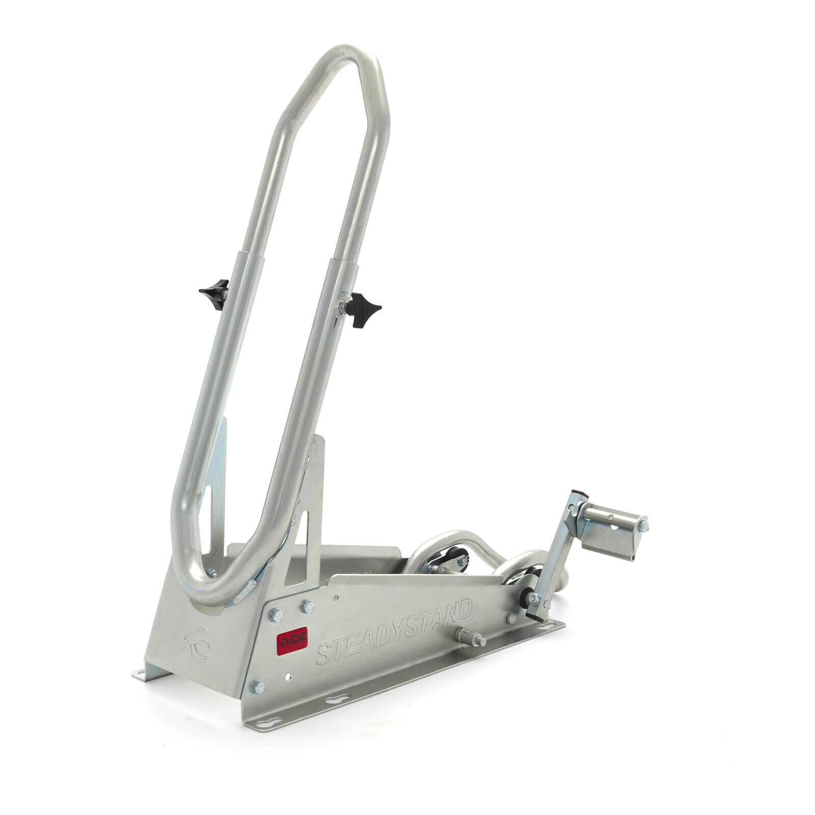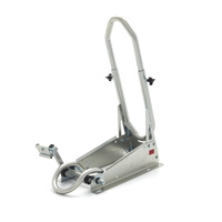 The SteadyStand Cross has a clever clamping device that will prevent your motorbike from moving or leaning over. By using the foot pedal your front wheel can easily be anchored to the stand. This makes it unnecessary to pull down your fork and damage the seals. By using the SteadyStand Cross you will only have to use tie-downs to secure the rear end of your motorbike. The special foot pedal can be installed on both sides of the SteadyStand Cross. The SteadyStand Cross is suitable for 18 to 21 inch wheels and tyre sizes from 90 up to 120mm.