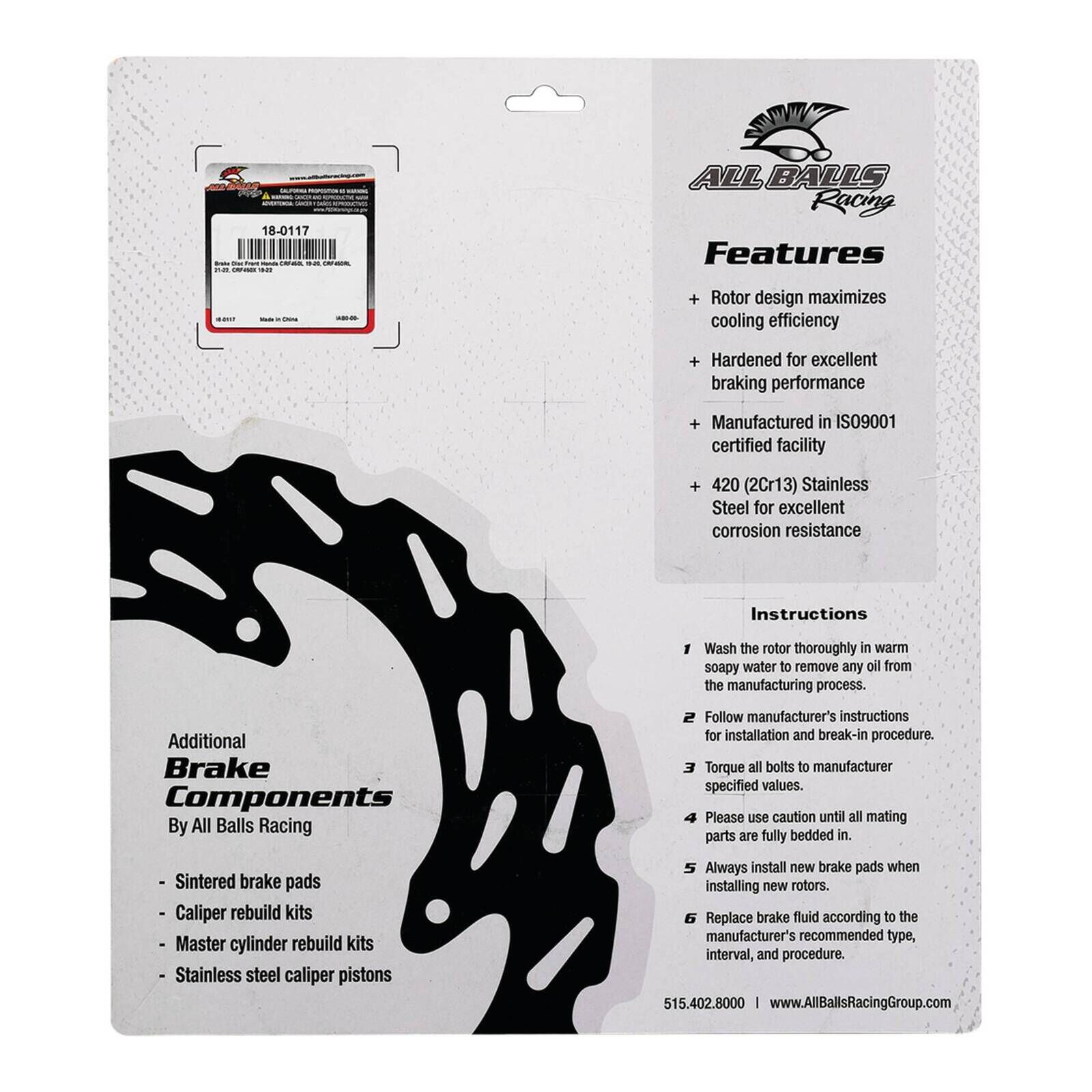 These brake disks are made of 420 stainless steel providing excellent corrosion resistance.