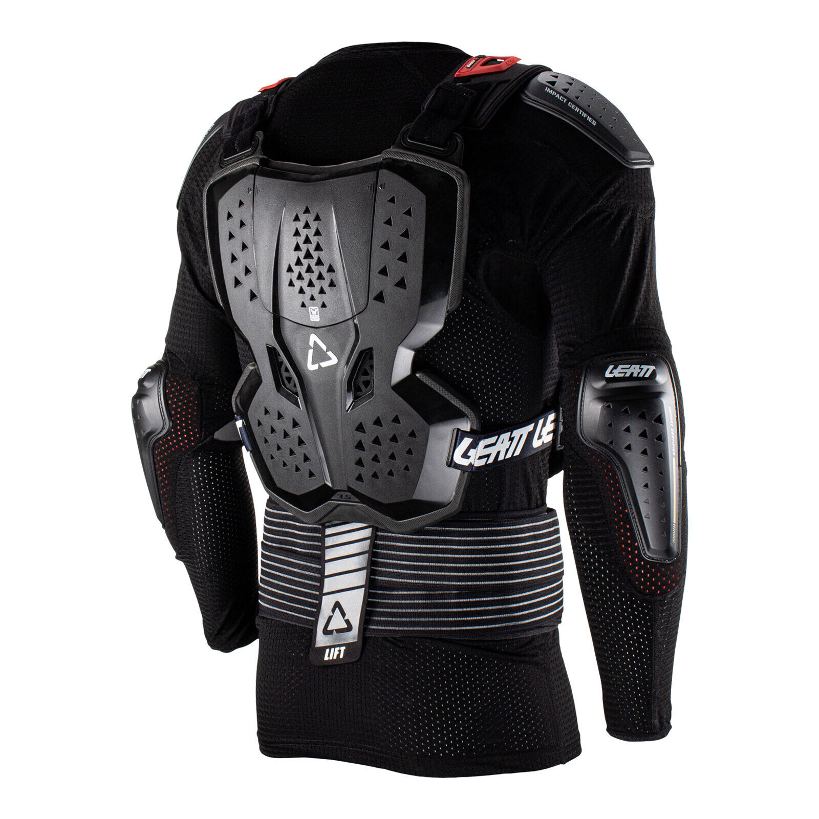 The 3.5 Body protector comes in 2 pieces. There is a zip-up compression suit with built-in shoulder and elbow impact protectors and also a height-adjustable kidney belt. Then a hard-shell CE-certified chest and back impact protector is used over the top.