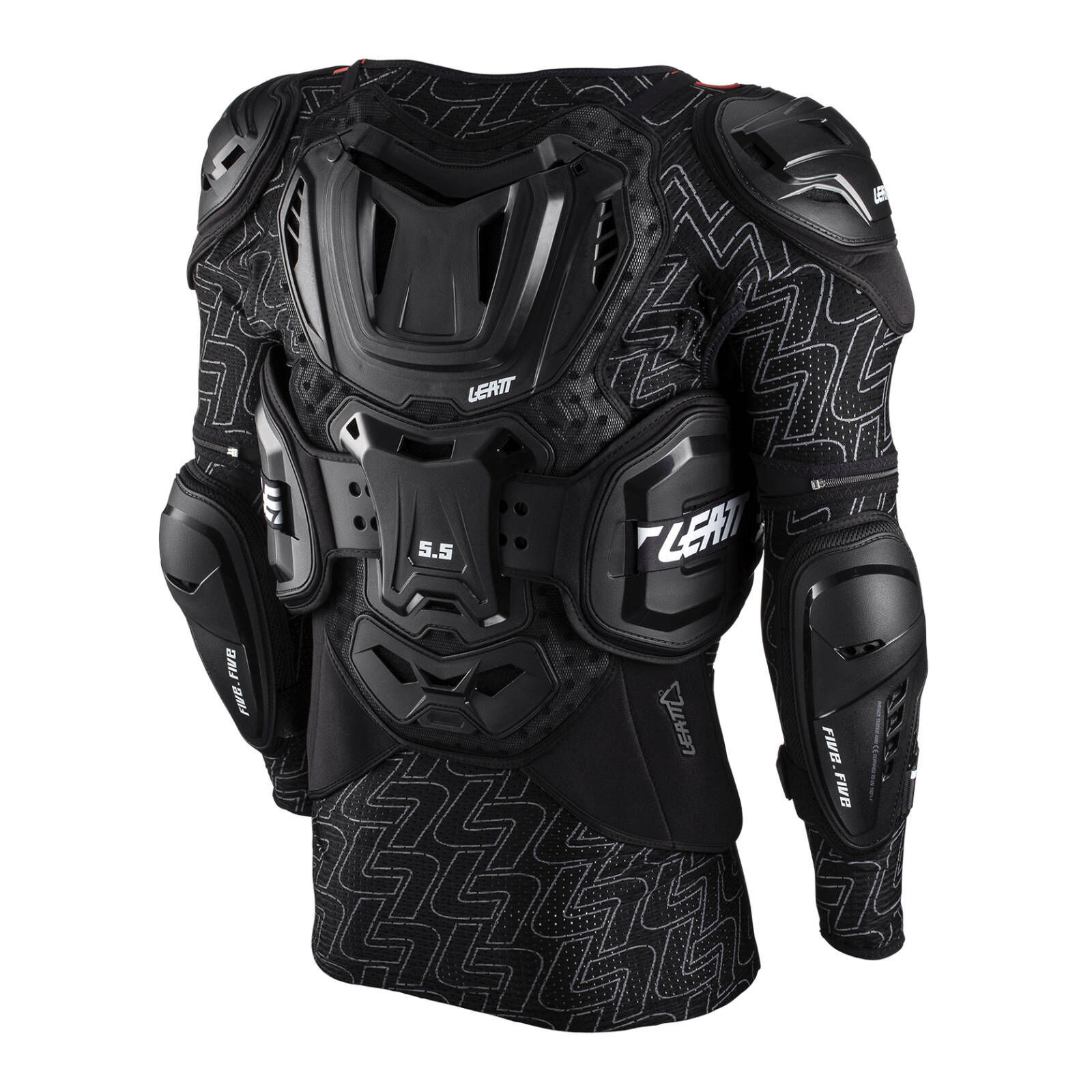 The hard shell 5.5 Body Protector is lined with 3DF AirFit impact foam that is CE-certified and offers chest back elbow shoulder and side protection.