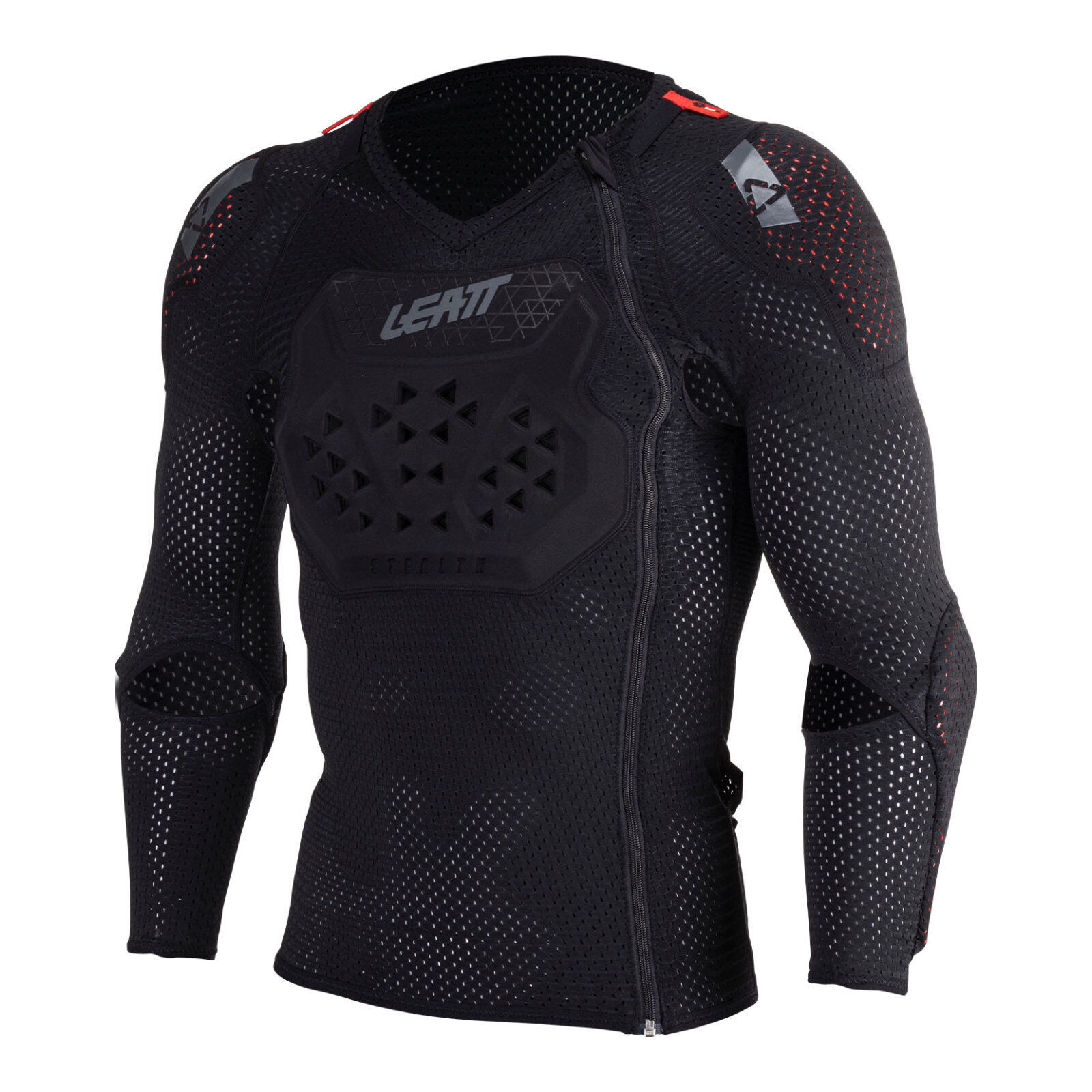 Featuring CE level one back shoulder and elbow protection as well as a chest pad the ReaFlex Stealth body protector has you fully covered. The Leatt- developed material ReaFlex absorbs energy under impact but is extremely comfortable due to its Flexibility. The vest has a full-length zip for easy fitting and works with or without a Leatt Neck Brace