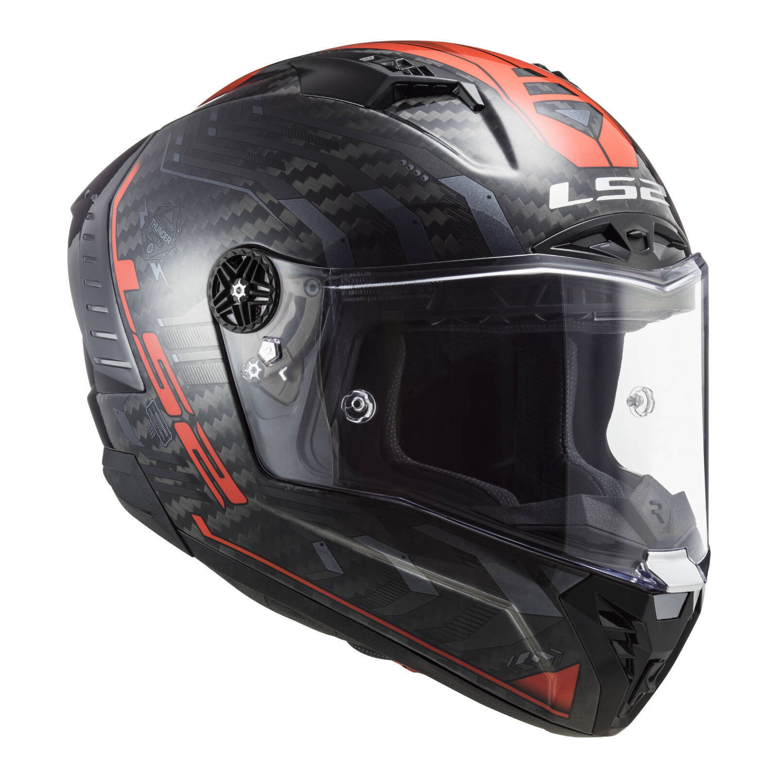 Maximum resistance thanks to its 100% carbon fibre shell. Excellent peripheral vision. Emergency release cheek pad system.
