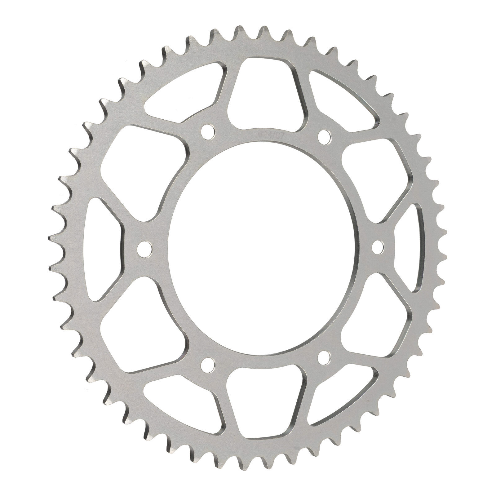 CNC machined from case-hardened Chromoly steel the MTX Hornet Lightweight Steel rear sprockets are built to last. The combination of the fully-heat treated steel and computer designed weight reduction holes the MTX Hornet will last longer than any alloy sprocket and weigh less than solid OEM steel sprockets. Self-cleaning holes increase chain and sprocket life while a nickel finish provides corrosion and wear resistance.