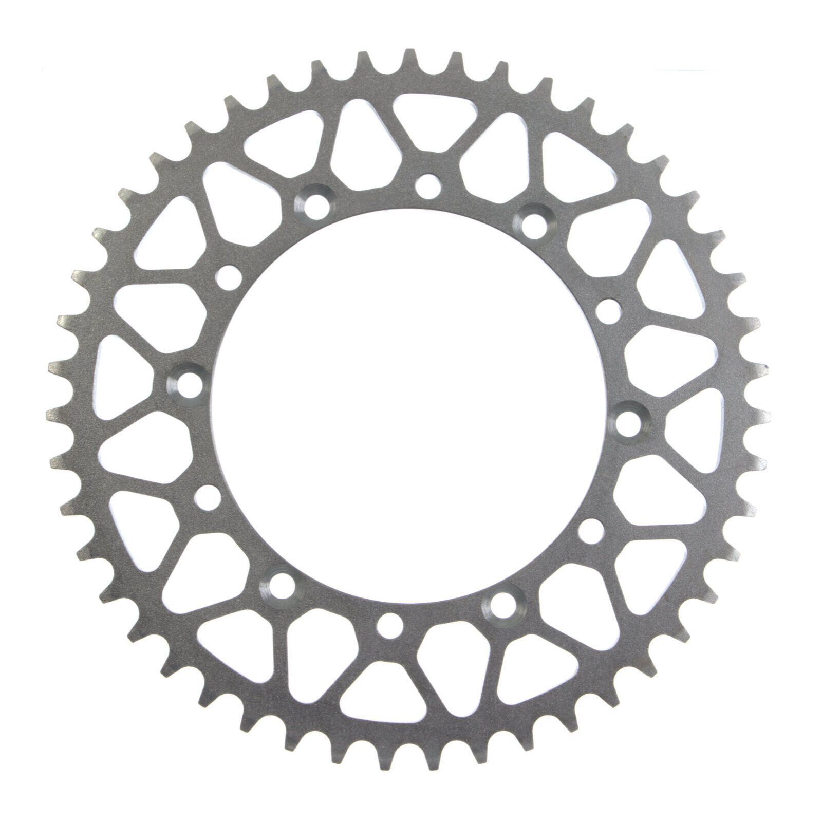 CNC machined from case-hardened Chromoly steel the MTX Hornet Lightweight Steel rear sprockets are built to last. The combination of the fully-heat treated steel and computer designed weight reduction holes the MTX Hornet will last longer than any alloy sprocket and weigh less than solid OEM steel sprockets. Self-cleaning holes increase chain and sprocket life while a nickel finish provides corrosion and wear resistance.