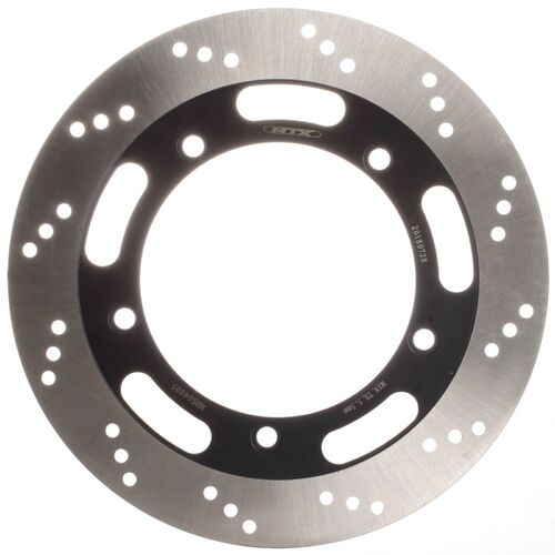 MTX solid discs are constructed using one complete segment of Japanese SUS 420 stainless steel, then heat-treated to HRC 36+-2. Lightening and drill hole patterns are as per OEM designs to improve braking performance and reduce the temperature of the disc.