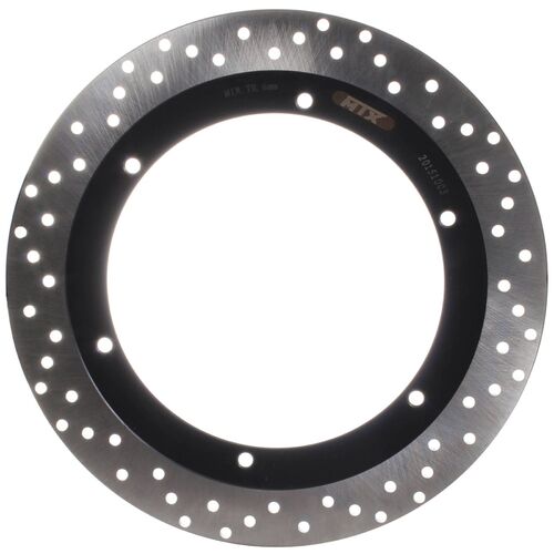 MTX solid discs are constructed using one complete segment of Japanese SUS 420 stainless steel, then heat-treated to HRC 36+-2. Lightening and drill hole patterns are as per OEM designs to improve braking performance and reduce the temperature of the disc.