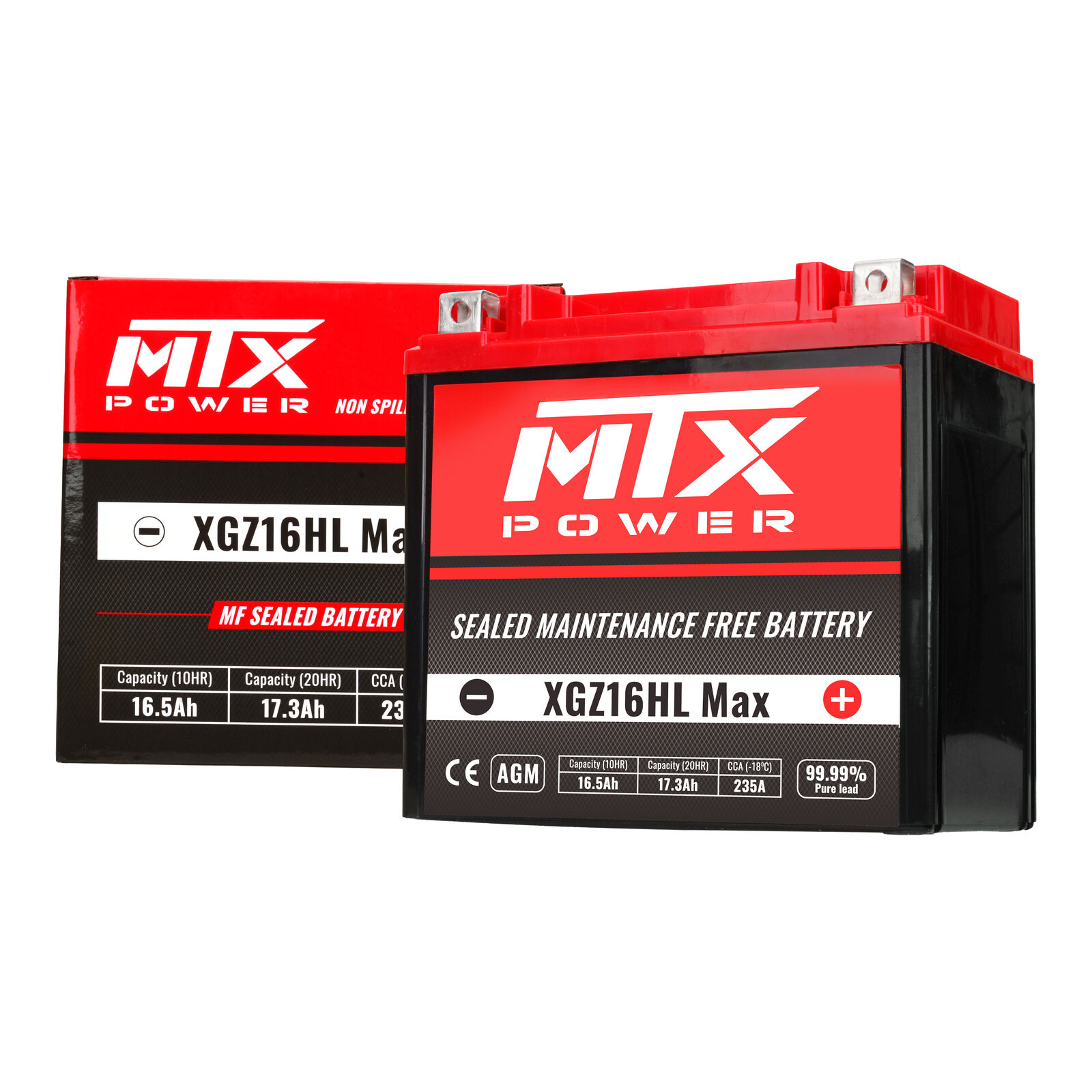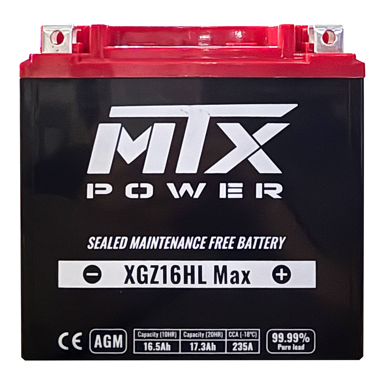 MTX Power's high-performance AGM battery boasts an install and go design. The use of the latest developed absorbed glass mat (AGM) material significantly improves the CCA and life-cycle of the battery. The new straight-through welding technology effectively reduces the internal resistance so the battery outputs much higher cranking power.