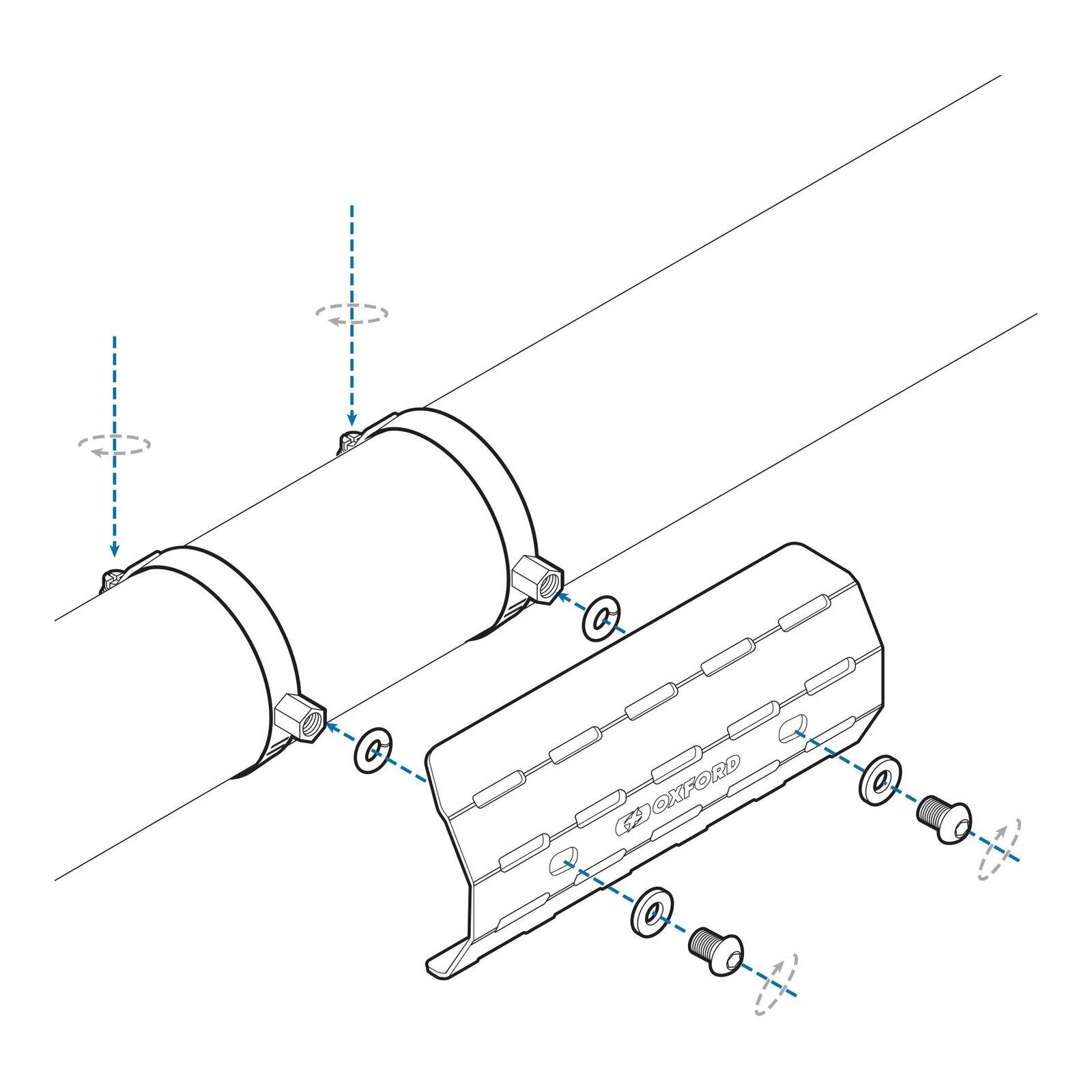 Oxford's Exhaust Heat Shield offers thermal protection by deflecting radiated exhaust heat and guards against you your clothing or your accessories from accidently touching a hot exhaust system.