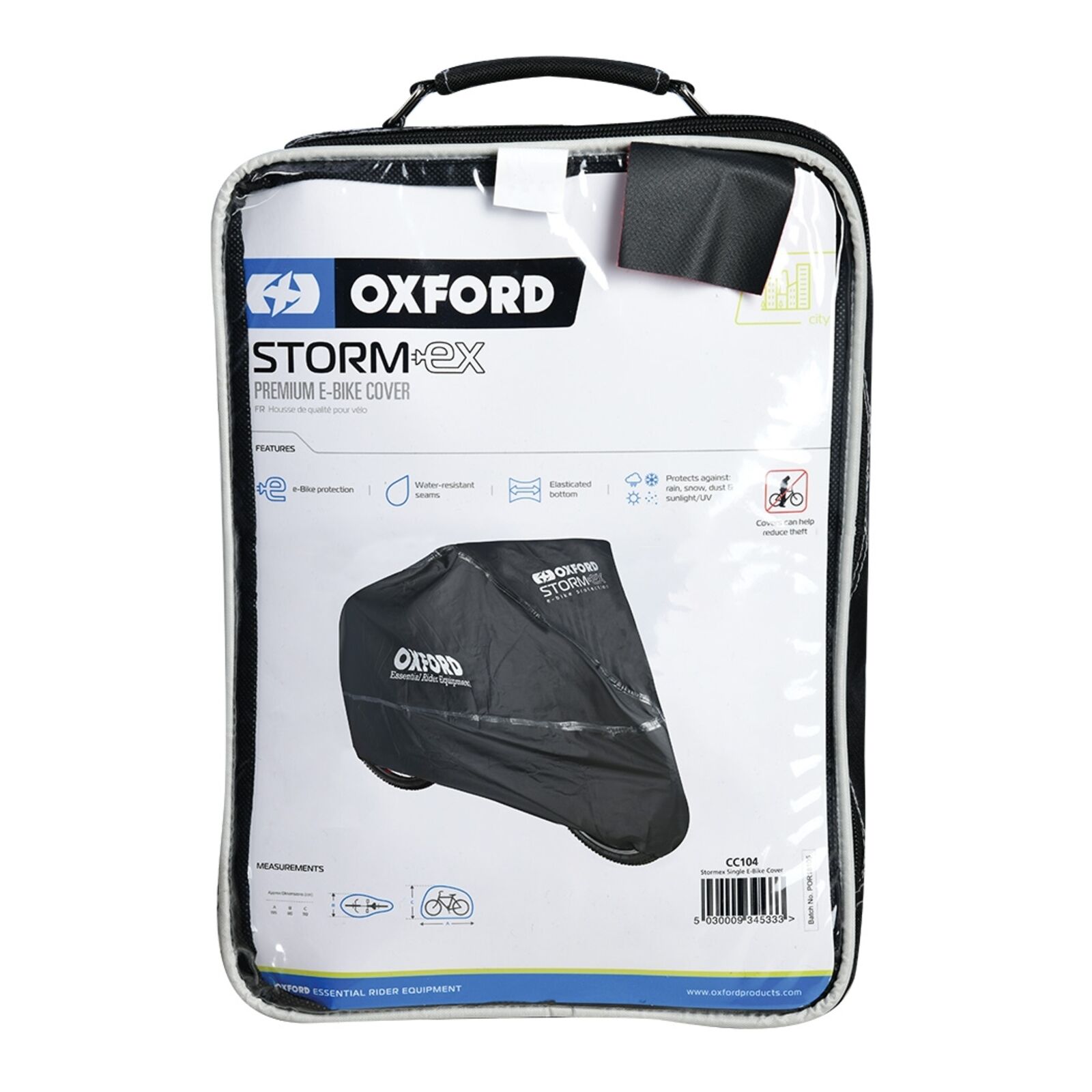 The Oxford Stormex is a premium E-bike cover that is suitable for indoors and outdoors. Oxford's most famous bike cover has a reputation to protect! With a tough outer it will protect your bike from all kinds of weather. Additionally the interior features a luxurious padded lining that shields against small accidental bumps and knocks while parked.