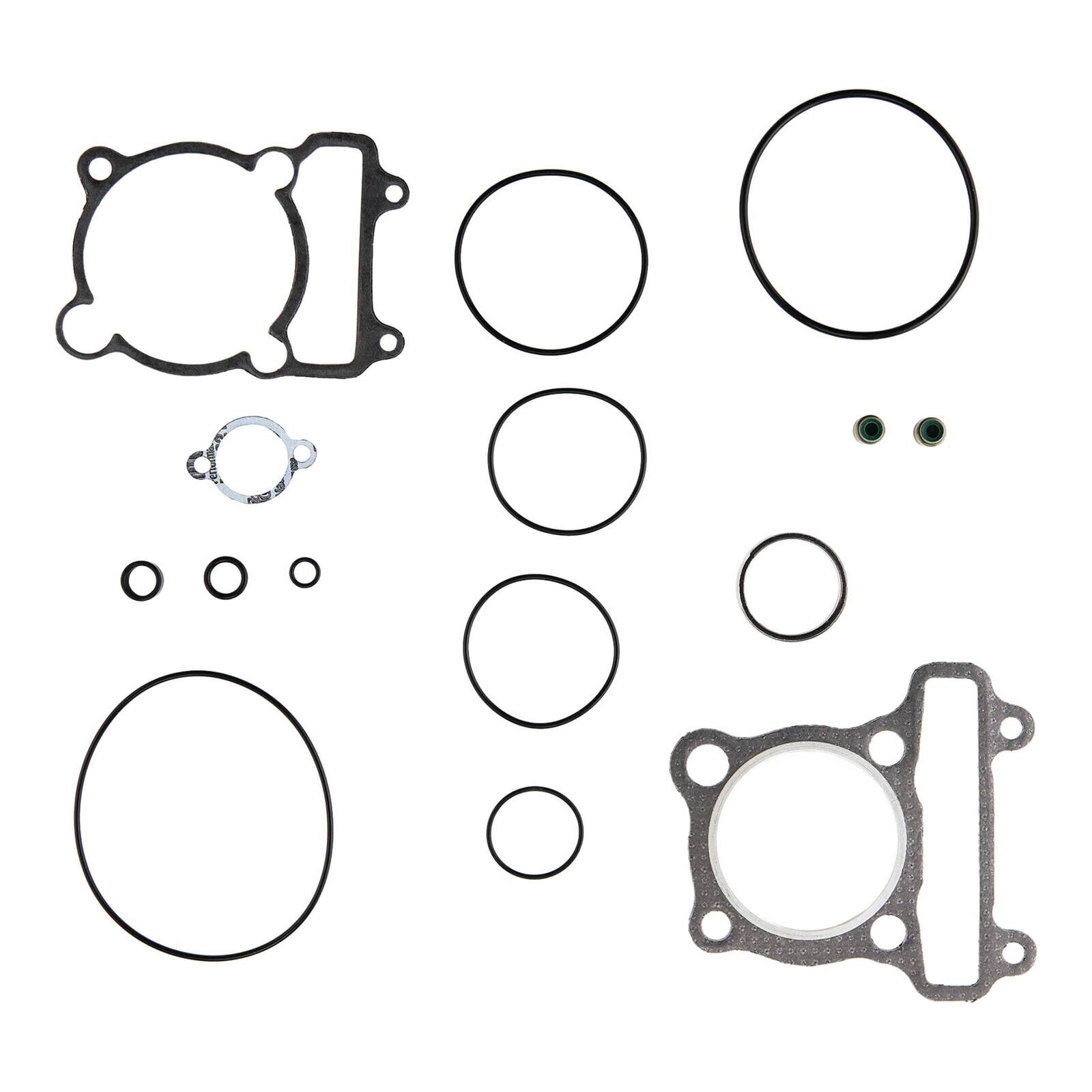 These sets include the head base and exhaust gaskets valve seals O-rings and other gaskets to complete a top-end rebuild.